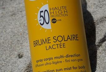 J’ai adoré la Brume Solaire Lactée Biotherm (Indice 50). Déjà c’est un spray multi direction et j’avoue que sur la plage j’aime le coté pschitt ! Le produit pénètre immédiatement, n’est absolument pas gras, sent bon et bien sur et résistant à l’eau ! J’étais tellement convaincue du coté pratique que je l’ai glissé dans la valise du jeune adulte qui me sert de fils et qu’il l’a utilisé sur sa peau fragile ! Donc je pense que c’est le meilleur des tests quand un jeune mâle de 19 ans vous ramène un produit quasi-vide ! (Mais on va en reparler de cet enfant...)