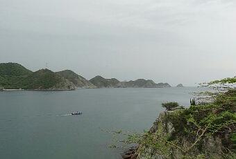 Vue sur la baie de Taganga et la mer des Caraibes un jour maussade… mais attention, il faisait chaud quand même! C’était même mieux…moins chaud et moins de crème solaire