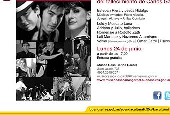 Ce lundi 24 juin 2013, on commémorera en Argentine et à Medellín en Colombie le 78ème anniversaire de la mort de Carlos Gardel (1890-1935). Pour l'occasion, l'après-midi musicale du lundi intitulée traditionnellement Mis tardes con Gardel commencera à 17h, au lieu de 18h habituellement, au Museo Casa Carlos Gardel, Jean Jaurés 735.