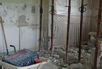 05/13 - Vue de face : préparation bas de murs et suppression des escaliers d'accés à la porte d'entrée.