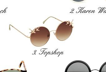 1. Coach Alicia / 2. Karen Walker Anywhere / 3. Topshop Swallow Trim Round / 4. Persol Havana / 5. Beyonce Knowles for The Row