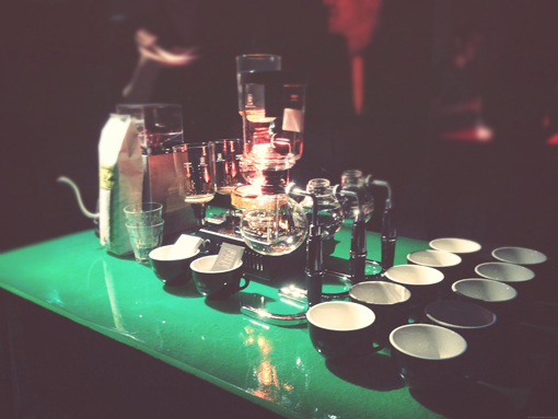 We took the opportunity to visit the exhibition The Virtual Coffee which runs until September 15 and offers a multisensorial experiment over coffee: notes to smell created by Olivier Pescheux (big parfumer from Givaudan who created amongst others Higher Dior, 1 Million and some Dytpique perfumes), a "bang" from which you can suck up coffee smoke, or taste the filtered siphon coffee from Coutume. Listen, smell, taste, it even ends up by discovering the new concept of Ophone, a device used to send olfactory messages (imagine you're eating a lemon pie at your mum's, well you could - a day perhaps - send this smell to your friends across the world!).