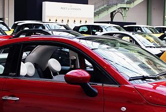 Difficile de rentrer dans le Grand Palais avec sa voiture me direz-vous.En effet, c'est pour ça que Fiat intervient.Une fois dans la "salle de cinéma", c'est une rangée énorme de petites voitures mulicolores qui s'étend devant nous. Bon, il y a des sièges aussi, parce qu'on peut pas tous être dans un Fiat, c'est dommage, mais dans la vie, il y a des choses qui se méritent !Euh... il faut faire quoi alors ?Il faut aller voir du côté de Moët & Chandon. Pas tellement de rapport à première vue, mais en fait si. On vous propose une expérience haut de gamme : dégustation de champagne + ciné en Fiat.C'est trop la classe ça ?Pour 78euros le pass.