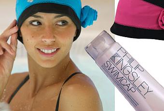 Effet bonnet de bain avec le « Swim Cap » de Philip Kingsley, créé en 1984 pour protéger les cheveux des naïades américaines de l’Equipe de Natation Synchronisée aux J.O. de Los Angeles (on sait comme les Américaines tiennent à leur chevelure hollywoodienne). Un véritable soin « bonnet de bain » convenant à tous les types de cheveux, à la texture généreuse et surtout l’action waterproof (étanche) formulée à l’huile de ricin et d’olive facilitant le coiffage et la résistance à l’eau, riche en acide para-amino-benzoïque (substance apparentée au groupe vitaminique B) aux vertus protectrices et antioxydantes, ainsi qu’en glycérine hydratante.