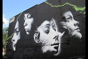 Celle-ci fait partie d'un diptyque du côté ouest de St-Laurent, dans une cour où ont lieu des travaux. j'espère que ce qui y sera construit ne cachera pas cet original.