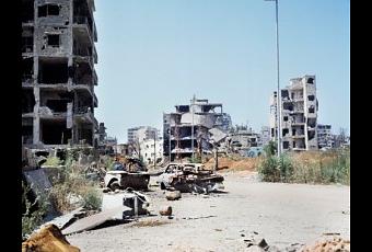 Deux photographies de Fouad El Khoury, issues de sa série « Guerre civile », représentant des immeubles effondrés, illustrent ce constat, comme les six impressions numériques de Bernard Khoury intitulées « Cicatrices évolutives », autour de la destruction de ruines urbaines. La représentation par Oussama Baalbaki, dans une monochromie inquiétante et glaçante, d’une voiture brûlée (« Sans titre », acrylique sur toile, 2012) y contribue également, ainsi que « Remaking the city », série de 64 photographies formant une installation murale de Randa Mirza et la « Vidéo pour la fin du temps », de Roy Samaha.