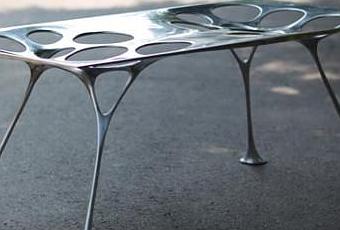 Vous vous souvenez peut-être de la table Pneumatic de Il Hoon Roh. Le studio londonien récidive aujourd’hui avec cette table à manger / bureau R EX07 (pour (Radiolaria Experiment07, un nom de baptême digne de Star Wars qui en dit long sur l’ambition futuriste des concepteurs). La table R EX07 est réalisée en alliage d’aluminium et acier inoxydable avec un plateau en verre trempé. Ses pieds intégrés en acier inoxydable sont réglables en hauteur. La table est le résultat d’une longue recherche. Elle a été conçue selon un processus d’étirement physique de la matière, à la manière d’un tissu, mais appliqué ici sur une pièce unique en alliage. Les outils d’étirement ont été spécialement mis au point par des mathématiciens. La résultat final est réalisé à la main avec deux finitions disponibles : amande satiné inox poli. Dimensions: L 180 cm x l 90cm x H 74cm. La table R EX07 est produite en édition limitée à 12 exemplaires. Prix sur demande.