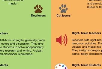 L’infographie présentée ici permet de différencier plus clairement ces deux hémisphères. Pour chacune d’entre elles y sont associées des informations concrètes pour mieux comprendre les différences entre le cerveau gauche et le droit.