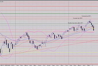 Au cas où les 3600 points étaient rejoints prochainement (niveau que nous avons eu tant de mal à franchir en 2012), puis enfoncés, l'échec récent sous les 4100 points prendrait une terrible signification avec un retour vers les 3400 points voire en direction des 3000 points.
