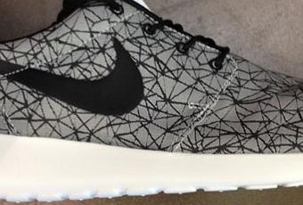 Après la Nike Air Max 1 Black Graphic Print, découvrez cette Nike Roshe Run qui dispose d’un upper gris contrasté par un print géométrique noir identique à la AM1, un swoosh noir et une semelle blanche.