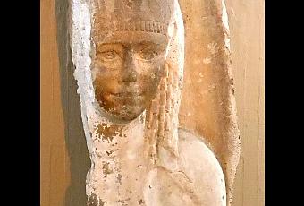 Or, comme dans la statuaire égyptienne classique, la femme est toujours placée à gauche de son conjoint et qu'en outre, la représentation d'un couple royal se tenant la main est, sauf à l'époque d'Amenhotep IV et de Nefertiti, extrêmement rare dans cet art, la reine ici ne peut nullement être l'épouse de l'homme qui était à sa gauche.