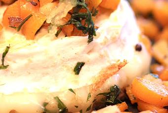 Je viens de recevoir une très beau colis gourmand de la part de Roquefort Papillon avec les produits de sa gamme ,je les remercie car nous avions cuisiné certains de leurs produits lors de notre week end mais là je peux les déguster et en cuisiner certains . C'est ce que j'ai fait hier soir en utilisant le Brebille ,un fromage de brebis à pâte molle , son goût est légèrement acidulé ; il est très agréable chauffé. Je l'ai associé à des carottes nouvelles , du miel et des noisettes .