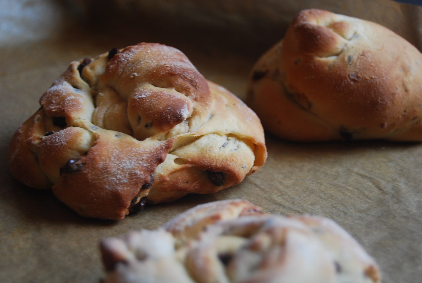 ingrédients : 300 g de farine1 pincée de sel50 g de sucre semoule1 oeuf1 càs de grains de lin 130 g de lait10 g de levure boulangère fraîche80 g de beurre en pommade (de la margarine végétale)Préparation : Je me suis permise de faire un copier coller de la recette de maryse&cocotte ici. N'hésitez pas à aller sur son blog pour voir les explications en photo.