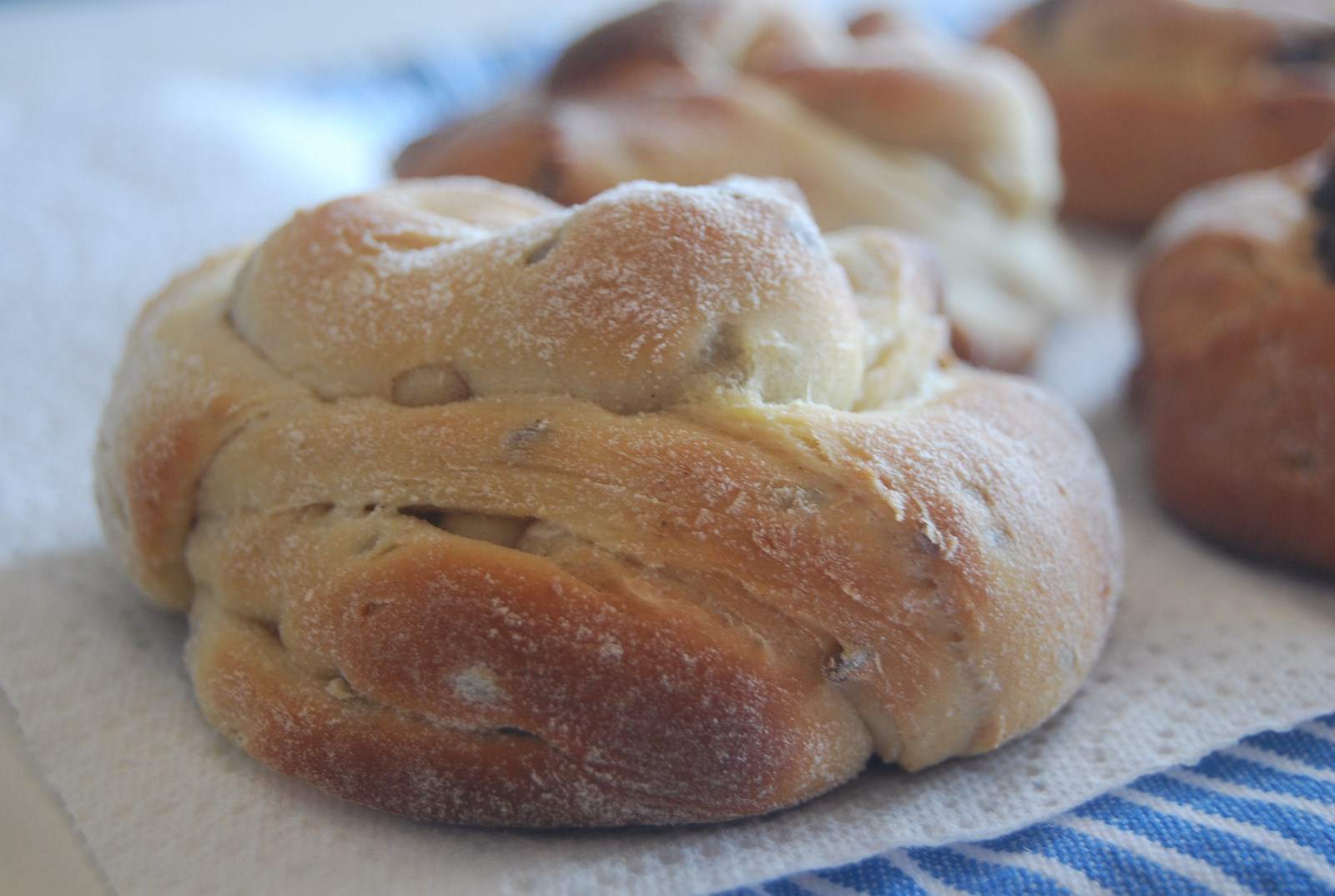 Je voulais faire une brioche pour le goûter et en voyant ces brioches chez la charmante Touria du blog maryseetcocotte j'ai eu tout de suite l'envie de les tester. C'est vrai que je n'ai pas eu le tour de main, pas aussi jolies que celles de maryse & cocotte mais Sirine a beaucoup apprécié les brioches fleurs a-t-elle-dit et après tout ce qui compte c'est le goût. j'ai rien changé à la recette ne serait ce que l'ajout des grains de lin dans la pâte. j'ai fourré quelques brioches de pâte à tartiner, d'autres de pépites de chocolat et d'autres de cannelle.