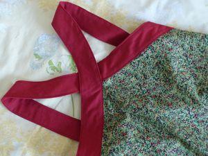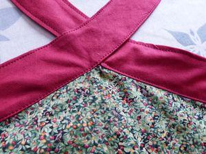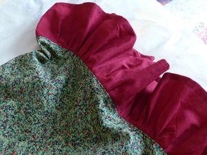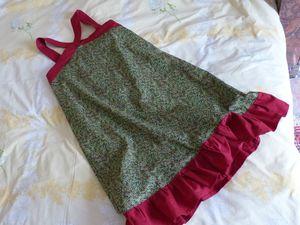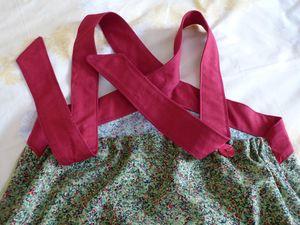 Voici ma deuxième expérience de "Croisette" (créatrice : Gasparine), et je suis allée plus vite cette fois, sachant quelles en étaient les difficultés : bien couper les bretelles en vis-à-vis en regardant attentivement les schémas du patron, les retourner, poser le volant du bas de la jupe - j'ai choisi de froncer chaque morceau de volant à chaque devant et dos - et conserver la possibilité d'ajuster la taille en attendant de couper les boutonnières lors du premier essayage "sur pièce".