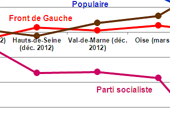 Pour le Front de Gauche, les résultats ne sont clairement pas à la hauteur des attentes étant donné le contexte d’impopularité d’un gouvernement de gauche. Les résultats obtenus dans ces circonscriptions sont très limités (entre 4,5% et 8,8% des voix), et surtout la progression par rapport au premier tour des élections législatives de l’an dernier est marginale : +1,4 point au mieux. Le Front de Gauche se retrouve dans une situation parallèle à celle du Parti communiste entre 1984 et 1986, puis entre 1988 et 1993, quand son opposition à la gauche de gouvernement permettait au PC de freiner sa chute, mais certainement pas de l’enrayer.