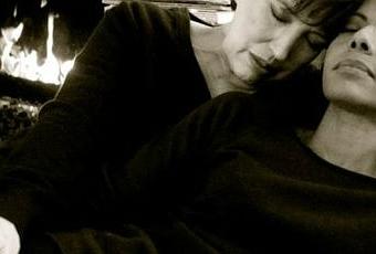 Square du Temple, devant la Mairie du Troisième, Olivier Ciappa exposait librement, en plein air et pour le plaisir de tous, ses photos de "people" (des gens que je n'apprécie pas forcément par ailleurs, mais qui me deviennent plus sympathiques d'avoir participé à ce projet) ses Couples imaginaires. En réaction aux délires et violences homophobes de ces derniers mois, des personnalités ont accepté de poser pour le photographe, seuls avec une dédicace ou en couples de même sexe. Roselyne Bachelot, qui n'est pas précisément ma tasse de thé, mais qui continue à montrer un courage politique rare, tendrement penchée sur l'épaule d'Audrey Pulvar, par exemple.