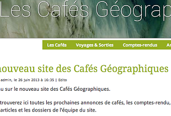 Le site des Cafés géographiques a connu, ces dernières semaines, une nouvelle panne. L'équipe a travaillé pour lancer, sur la même adresse, une nouvelle maquette que nous préparions depuis quelques mois. Le nouveau site est en cours de test, et sera opérationnel dans les jours à venir.