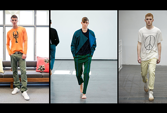 Le défilé de Julien David fait écho au confort. Peut-être parce que dès le début, le créateur cherche à camper une allure douce dès le premier passage, à attendrir son public à chaque saison. Ainsi, la première silhouette de l'été prochain offre une superposition étonnante et réfléchie : la longue parka anthracite bordé bleu électrique (façon robe) portée sur une très jolie veste à brandebourg s’offre aux journalistes venus TRÈS nombreux. Les gars de Julien ressemble à ces garçonnets à la fois sensibles et frondeurs se moquant des conventions, libre d’être à l’aise dans leurs vêtements. La première silhouette est suivie de quelques autres personnages tout aussi "reposants". Le regard s’habitue, les textiles tissées commencent à fleurir ici et là, les vestes adoptent des coupes avec une jolie rondeur, une poésie s’installe.