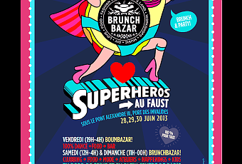 Pour fêter l’arrivée de l’été, BrunchBazar fixe un nouveau rendez-vous saisonnier et parisien incontournable. Pour sa 11ème édition, BrunchBazar s’installe les 28, 29 et 30 Juin au Faust, un nouveau lieu de 2000m2 installé sur les berges de la rive gauche. La nouveauté pour cette édition!? BrunchBazar invite ses visiteurs à célébrer le fameux mythe du super-héros sous toutes ses formes. BrunchBazar ouvre ses portes le vendredi soir en format BoumBazar, rv 100% food + clubbing. Découverte des espaces mode, ateliers, enfant dès le samedi à midi.