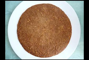 Répartir la pâte dans un moule rond silicone d'environ 18 cm de diamètre (modèle SFT118 Silikomart) en prenant soin de bien tasser et lisser la préparation dans le moule.