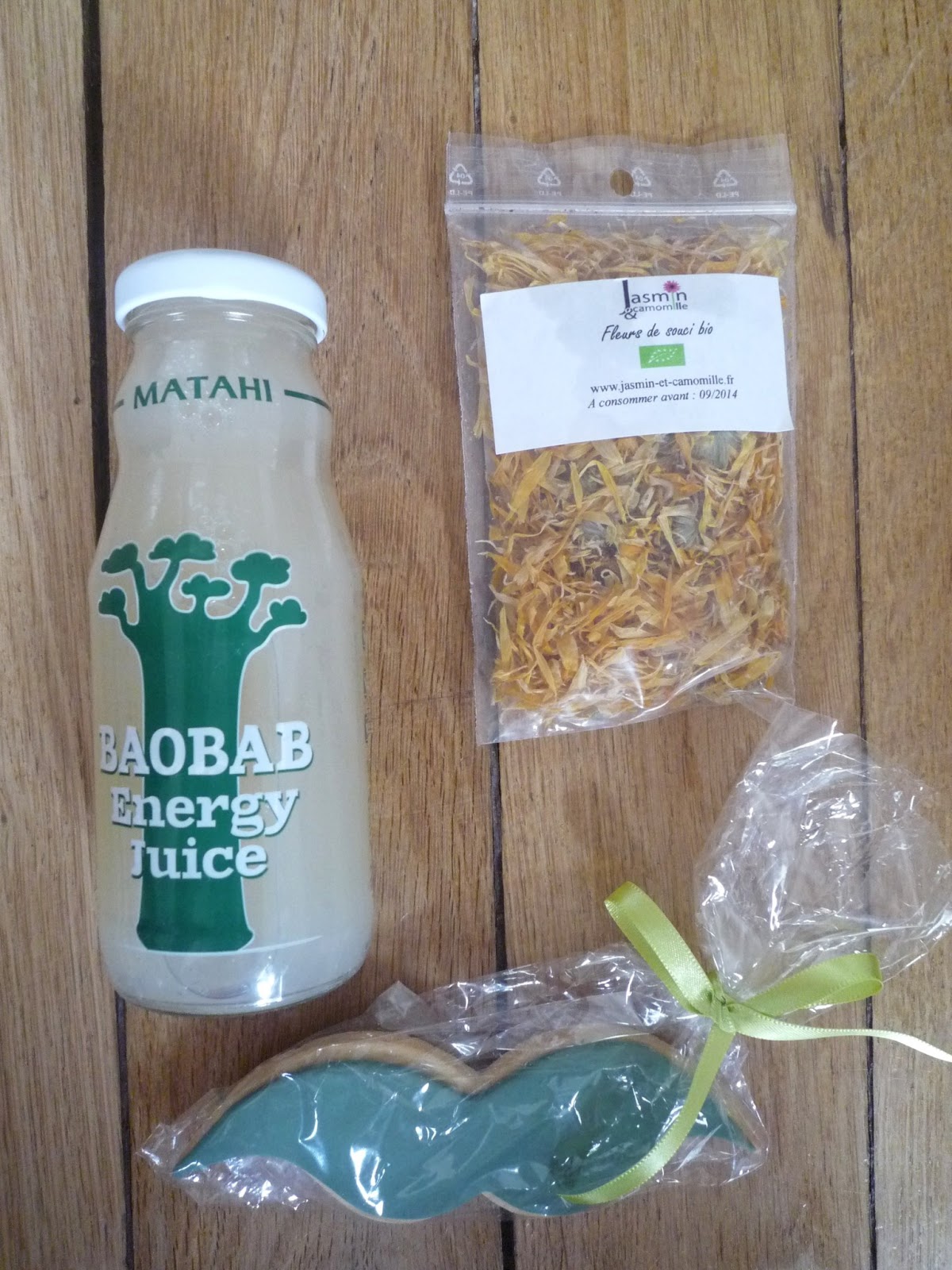 Pour les gourmandes: un jus de Baobab (très étonnant), des fleurs comestibles pour les cuistots et un sablé moustache délicieux de l'Atelier des Sucreries!
