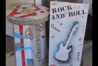Réalisations prévues pour les stages de cet été : un tabouret en carton et un tableau rock and roll !