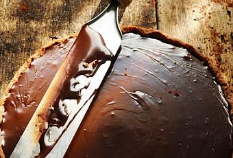 Faites chauffez la crème puis versez-la en plusieurs fois sur le chocolat, trois fois c'est bien, et travaillez-la à la spatule à chaque fois. On va éviter le fouet pour ne pas remplir la garniture au chocolat de jolies petites bulles pas très esthétiques sur le dessus de la tarte.Quand vous avez fini d'incorporez la crème et obtenu ainsi une jolie émulsion ajoutez le miel et le beurre et incorporez-le toujours avec de la délicatesse dans le poignet.Versez-la sur la pâte cuite et mettez au frais deux bonnes heures.Après vous n'avez plus qu'à déguster en vous interrogeant sur la relativité des recettes classiques !My chocolate tart