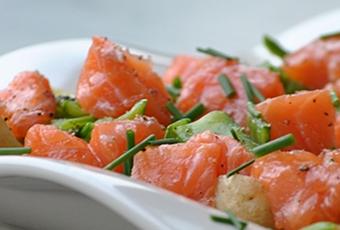Encore un petit clin d'oeil à mon périple marocain, avec ce saumon cru mariné à l'huile d'argan. Si vous avez un peu d'huile d'argan sous la main, n'hésitez pas à en assaisonner vos carpaccios, tartares, et salades. A utiliser par petites touches, puisque son goût est puissant.Ingrédients pour 4 personnes :2 pavés de saumon frais de très bonne qualité1 douzaine de petites pommes de terre nouvelles200g de mange-tout10 brins de ciboulettele jus d'1 citron4 cuillères à soupe d'huile d'arganfleur de selpoivre Avec un bon couteau, détachez la chair du saumon de la peau, et détaillez les pavés en cubes. Dans le fond d'un plat, mélangez le jus de citron avec l'huile d'argan, puis rajoutez les cubes de saumon. Parsemez de fleur de sel, d'un peu de poivre, mélangez, filmez et entreposez au réfrigérateur.Pendant ce temps, brossez les pommes de terre nouvelles sans enlever la peau, mettez-les dans une casserole d'eau froide salée et portez à ébullition. Le temps de cuisson dépendra de la taille de vos pommes de terre. Plantez la pointe d'un couteau régulièrement, et quand celle-ci s'enfonce facilement, égouttez les pommes de terre et laissez-les tiédir.Rincez les mange-tout, ôtez les extrémités. Faites bouillir une casserole d'eau et plongez les mange-tout une minute dans l'eau bouillante. Egouttez-les et passez-les dans une poêle avec de l'huile d'olive. Salez et poivrez.Dressez un plat ou des assiettes individuelles avec des rondelles de pommes de terre, des morceaux de mange-tout, les cubes de saumon marinés puis ciselez par-dessus la ciboulette. S'il vous reste de la marinade, répartissez-la sur les assiettes ou le plat. Encore un peu de fleur de sel et le tour est joué.