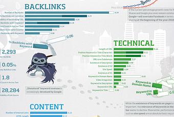 Searchmetrics.com publie une infographie détaillant les facteurs conduisant à un meilleur classement sur Google US après étude de 300 000 sites web.