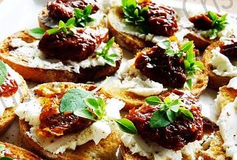 Toastez les tranches de pain, tartinez les de fromage de chèvres, posez dessus une 1/2 tomates confite un brin de basilic et un tour de poivre du moulin et c'est tout ...