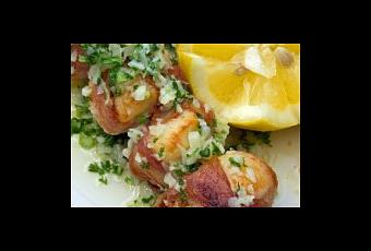 Sur des piques, alterner noix de Saint-jacques et bacon, saler, poivrer.