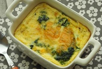- Placez les épinards dans le fond d'un plat (ou de ramequins individuels). Versez l'appareil dessus et enfournez pour 20 minutes.