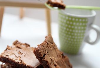 En sortant la plaque du four, retirez délicatement le gâteau avec la feuille de cuisson et laissez s’aérer sur une grille 3 heures au minimum. Le brownie est meilleur le lendemain.