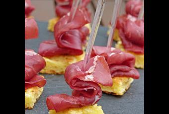 Idée d'apéritif simple et rapide : toasts de tortilla de tuiles apéritives avec de la bresaola