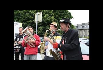 Le collectif du Train Fatal regroupe 8 musiciens issus de différentes fanfares de la Baie de Morlaix. Avant de s'élancer dans un grand périple, ils ont animé les quais de la gare de Morlaix, jeudi 4 juillet, sur l'heure de midi. Pendant 22 jours, ils vont aller à la rencontre des fanfares en Europe ! Jusqu'au 26 juillet, ils vont traverser 14 pays par voies ferrées et maritimes, selon un itinéraire qui les mènera de Morlaix à Istanbul. Leur ambition ? Rassembler en 2014 dans le Pays de Morlaix des fanfares de toute l'Europe... En attendant cet événement, les 24 et 25 août, ils se produiront à Santec avec d'autres fanfares bretonnes.