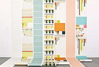 Le principe est tout simple, ce sont des bandes de papier peint coloré aux formes géométriques qu'on peut laisser seul ou associer à l'infini (l'infini du mur, on s'entend bien)