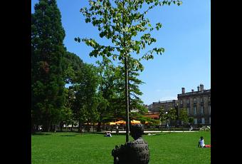Jaume PLENSA expose onze de ses œuvres à Bordeaux jusqu’à la fin de l’été. Parmi cet ensemble se trouve une installation reposante, dans le Jardin Public. Il s’agit d’un ensemble fait de bronze et d’arbre (du vrai arbre, avec tronc, feuilles et racines) représentant sept hommes et intitulé "Heart of trees". Cette œuvre date de 2007.