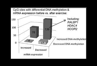 La méthylation de gènes liés au diabète de type 2 et à l’obésité est modifiée avec l’activité physique : Les chercheurs, par analyse génomique constatent, à la suite de ce programme, des changements épigénétiques dans 7.000 gènes. Lorsqu’ils examinent la méthylation de gènes liés au diabète de type 2 et à l’obésité, ils constatent qu’elle est modifiée à la suite de l’activité physique et parviennent à élaborer une carte de la méthylation de l’ADN (ou méthylome) des cellules adipeuses.