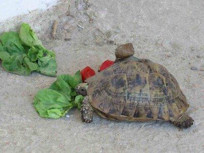 La petite tortue avait disparu, et on se disait qu'elle réapparaîtrait peut-être un jour. En attendant on en avait acheté une grosse au marché. Elle avait bon appetit et elle était accompagné d'un copain.