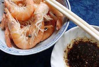 Il s'agit d'une cuisson hyper rapide, jeter les crevettes dans l'eau bouillante aromatisée et laisser cuire pendant environ 30 secondes, ensuite on déguste en trempant les crevettes dans une sauce. C'est un plat de Canton, il nous permet d'apprécier la fraîcheur des crevettes à condition qu'on choisisse des crevettes très fraîches !
