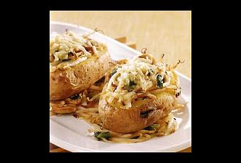- Farcir les pommes de terre avec le mélange de légumes. Parsemer de parmesan et de thym, puis cuire au four 10 minutes.