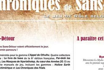 Les Editions Sans-Détour, c'est l'Appel de Cthulhu dans la sixième version, et Delta-Green, mais ce n'est pas que ça. Et il fallait bien un catalogue (à jour) sous les yeux pour suivre toutes leurs publications. Au total plus de 50 manuels de jeu dans plusieurs gammes prestigieuses.