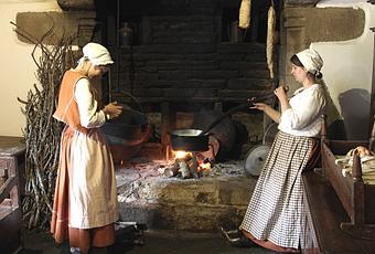 Gwelaouen (1) la maîtresse de maison, tout en discutant avec sa voisine Aziliz (1), est en train de préparer la bouillie de millet.