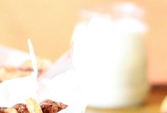 Dans un récipient, mélanger tous les ingrédients secs, dans un autre mettre l'oeuf, le beurre fondu, la pâte d'amande ou la crème d'amande plus le chocolat.