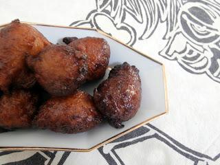 - faire un sirop avec 10cl d'eau et 300gr de sucre cassonade, versez sur les beignets encore chauds et égouttés .