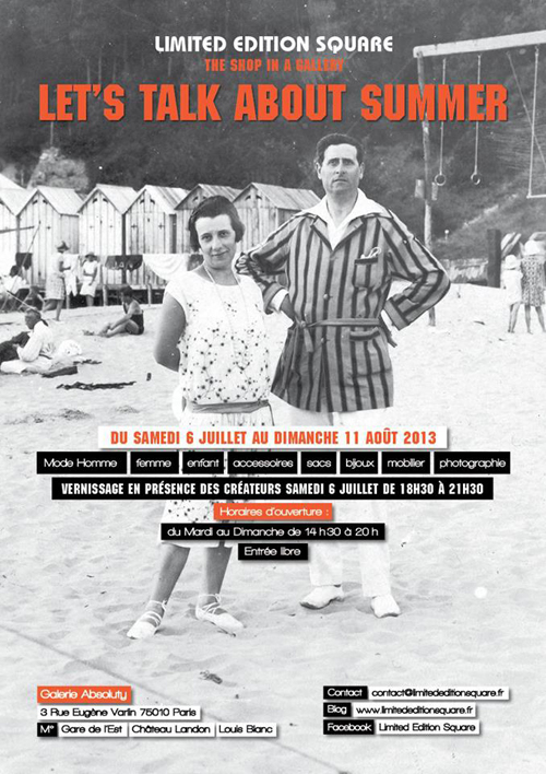 Quand ?Du samedi 6 juillet au dimanche 11 août 2013 (14h30/20h)Ouvert du mardi au dimancheOù ?Galerie Absoluty3 rue Eugène Varlin75010 Paris>>> Ici <<<Métro :Gare de l'Est (lignes 4, 5 & 7)Château Landon (ligne 7)Louis Blanc (lignes 7 & 7 bis)