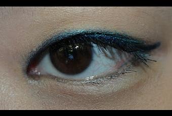 1. Mettre le fard Deep end sur la paupière mobile en laissant le coin interne. 2. Mettre le fard Evidence dans le coin interne de la paupière mobile, et bien estomper les deux couleurs. 3. Appliquez un crayon bleu en liner, et faire une virgule. 4. Et pour finir appliquez votre mascara.