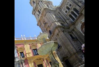 Pour ma part, je pense que c’est le vol transatlantique le plus radin que j’ai pris dans ma vie de voyageur. Comme nous volions en plus sur un très vieil appareil – donc avec des sièges accusant leur âge, sans appui-tête ajustable pour dormir ni écran personnel pour les films ou autre divertissement – j’étais bien content d’atterrir dans les temps à Malaga ce matin. Heureusement, malgré des turbulences fréquentes mais pas très violentes, le vol s’est autrement très bien déroulé et un sympathique et très tranquille adolescent québécois d'origine algérienne était assis à nos côtés. Il allait rejoindre pour huit semaines ses grands parents - toujours habitants de l'Algérie - qui avaient loué une maison à malaga pour l'été.Après les formalités douanières – très simples, je me suis senti plus bienvenu que lors de mon dernier passage de douanes étrangères – et un court trajet de métro/train de banlieue de l’aéroport vers le centro (trajet confortable à 1,70 euros, on est loin du 8$ qu’il faut payer à Montréal pour se taper la 747 sur la cahoteuse autoroute 20), nous avons raté le train de 10h40 vers Sevilla, et donc réservé des billets sur celui de 14h08. Un mal pour un bien, le délai nous a permis de nous offrir un petit déjeuner digne de ce nom (un délicieux sandwich de tortilla espanola accompagné d’un café con leché bien serré – le tout pour 2,50 euros), en plus de nous offrir le temps de nous balader dans le vieux centre-ville de Malaga.
