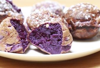 J’ai trouvé des patates douces violettes dans un supermarché chinois. Ils sont plus sucrés que les patates douces normales et je pensais que c’était parfait pour faire un plat sucré. A la texture et au goût, ces beignets ressemblaient à l’anko (pâte de haricots rouges, utilisée en cuisine japonaise pour faire des desserts, notamment des mochis). Si vous ne les trouvez pas, vous pouvezles substituer avec les patates douces normales en ajoutant un peu plus de sucre.